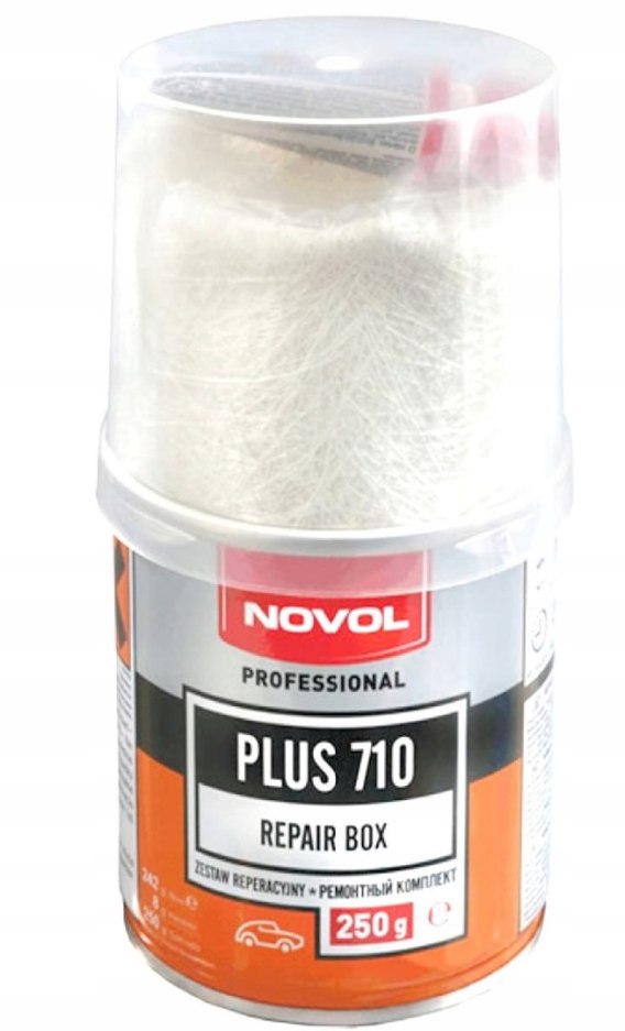 Zestaw reperacyjny składa się z żywicy poliestrowej, utwardzacza oraz maty szklanej.