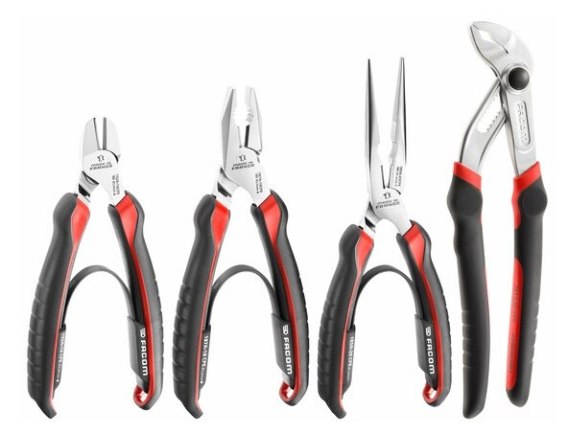 Zawiera: - 1 szczypce nastawne z blokadą: 181A.25CPE. - 1 szczypce tnące boczne: 192A.16CPE. - 1 szczypce półokrągłe: 185A.20CPE. - 1 szczypce uniwersalne: 187A.18CPE.