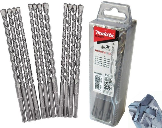 Rozmiary wierteł (średnica x dł. całkowita):5 x 165 / 6 x 165 (3 szt.) / 8 x 165 (3 szt.) / 10 x 165 (3 szt.) / 12 x 160 (2 szt.) mm