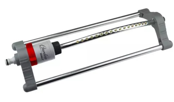 Zraszacz wahadłowy końcowy element systemu nawadniania, który sprawdzi się na większych powierzchniach. Dzięki długiej listwie zraszającej umieszczono 17 mosiężnych dysz.