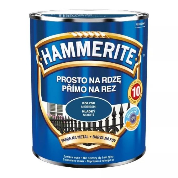 Hammerite Prosto na rdzę to nowoczesna, jednoskładnikowa farba, schnąca na powietrzu i przeznaczona do malowania antykorozyjnego i dekoracyjnego metali żelaznych (zarówno pokrytych rdzą jak i czystych).