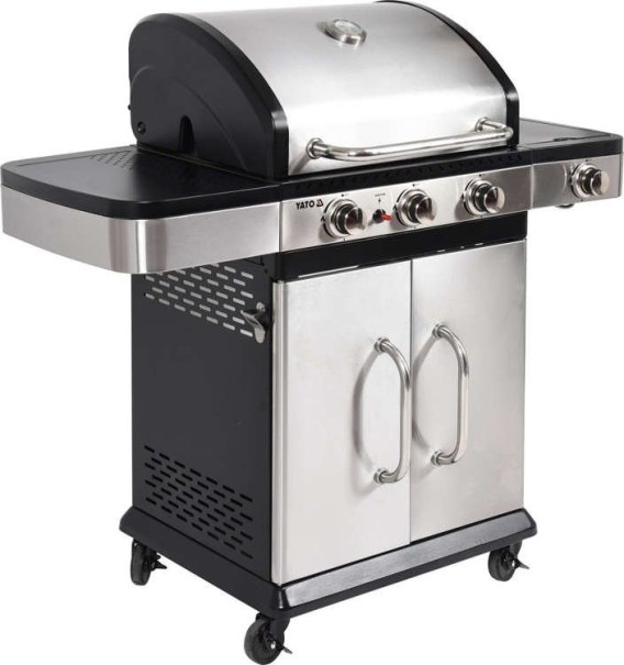Nowocześnie wyglądający grill gazowy 3+1 wykonany ze stali nierdzewnej, wyposażony w niezawodny, żeliwny ruszt. Półki boczne oraz pojemna, zamykana szafka ułatwią przechowywanie przypraw i niezbędnych akcesoriów. Palnik boczny o mocy 2,2kW umożliwi gotowanie i podgrzewanie potraw w garnku lub na patelni