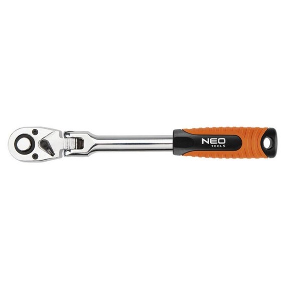 Grzechotka 1/2" NEO (nr ref. 08-519) o długości 285 mm, z korpusem ze stali chromowo-wanadowej, wykonana zgodnie z normą DIN 3122. Odginana głowica o zakresie ruchu 180° umożliwia pracę w specjalnych warunkach. 72 zębowy mechanizm zapadkowy umożliwia precyzyjną pracę, wykonany jest z wyjątkowo trwałej stali chromowo-molibdenowej przedłużającej żywotność narzędzia. Ergonomiczny, dwumateriałowy uchwyt poprawia komfort pracy. Jakość narzędzia potwierdzona certyfikatem TÜV i 25-letnią gwarancją producenta. Marka NEO spełnia oczekiwania profesjonalistów.