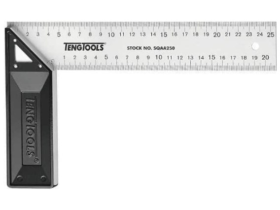 Podziałka w mm, głęboko trawiona, dobrze czytelna.