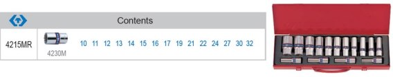 KOMPLET NASADEK 1/2 DŁUGIE DWUNSTOKĄTNE 15 SZTUK