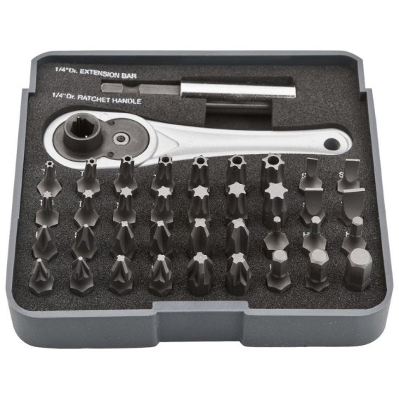 Zestaw końcówek wkrętakowych 1/4", składający się z 38 elementów.