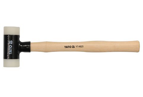 Specjalistyczny młotek montażowy do prac wymagających silnego uderzania i równoczesnej ochrony materiału np. do montażu części maszyn i urządzeń lub dobijania poziomującego układane płytki ceramiczne. Wyczuwalny brak odbicia młotka od materiału.