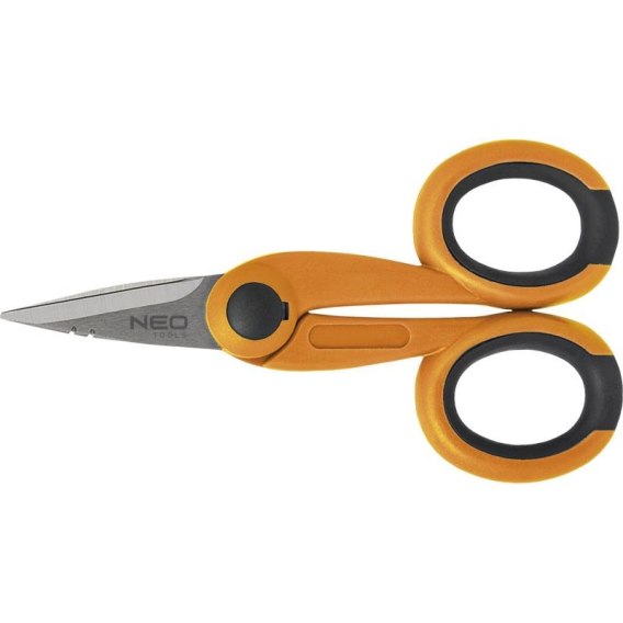 Nożyce do kabli i izolacji NEO (nr ref. 01-511) o wymiarze 140 mm, długość ostrza 45 mm. Ząbkowane laserowo ostrza zabezpieczone przed wyślizgiwaniem. Posiada dwa nacięcia służące do szybkiego odizolowywania kabli 0.7 i 1.0 mm2.