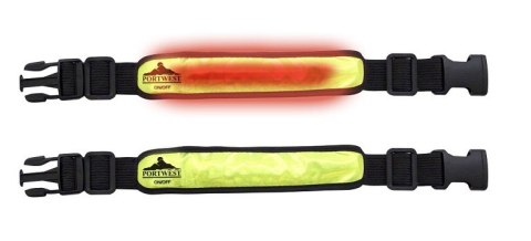 Lekka, regulowana opaska na rękę z panelem świateł LED emitujących światło ciągłe lub pulsujące.