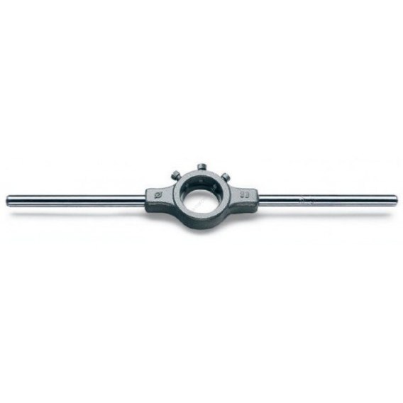 Beta Oprawka do narzynek FI 25,4mm towytrzymały element z rodziny narzędzi skrawających. Oprawka do narzynek służy do przytrzymywania narzynki podczas ręcznego nacinania gwintu. Solidne poprzeczki pozwalają na wygodne przeniesienie momentu obrotowego podczas pracy. Narzynki z wyglądu przypominają krążki z otworami w środku, wyposażone w ostrza do tworzenia gwintów zewnętrznych na metalowych walcach i prętach. Możliwe jest tworzenie gwintów metrycznych, calowych i specjalnych.