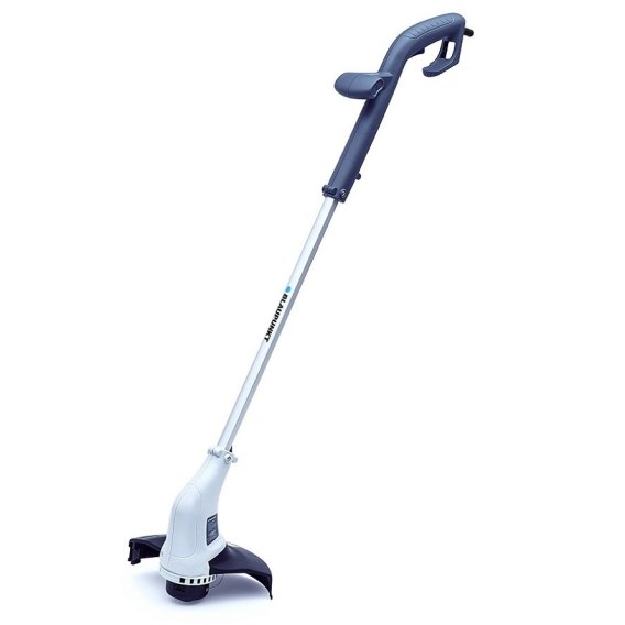 Podkaszarka elektryczna o mocy 250W wyposażona w półautomatyczny podajnik żyłki oraz ergonomiczny, dodatkowy uchwyt.