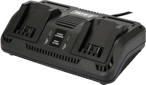 Ładowarka sieciowa umożliwia ładowanie dwóch akumulatorów YATO 18 V naraz, oszczędzając czas i usprawniając pracę. Prąd ładowania jest dopasowany do charakterystyki ogniw, co wydłuża żywotność baterii.