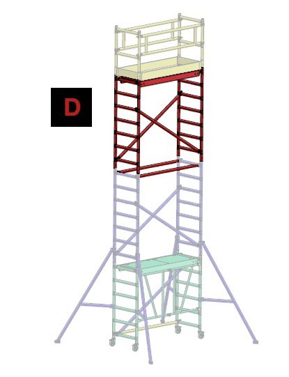 Elementy wieży są odporne na korozję. Maksymalne obciążenie wynosi 200 kg. Spełnia normę Klasa 3 20 kg/m3 UNI EN 1004.