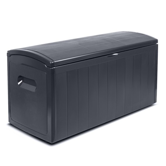 Skrzynia ogrodowa wykonana z wysokiej jakości tworzywa sztucznego z pewnością ułatwi nam przechowywanie poduszek, narzędzi do grillowania i innych urządzeń ogrodowych.