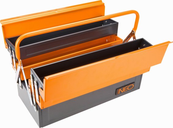 Skrzynka po otwarciu rozsuwa się na dwie strony ułatwiając dostęp do narzędzi.