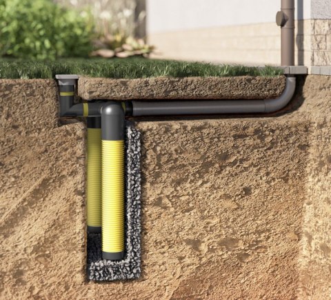 System powoduje dodatkowo stałe osuszanie instalacji i uniemożliwia jej zamarzanie, rury odprowadzające mogą więc przebiegać płytko pod powierzchnią gruntu.