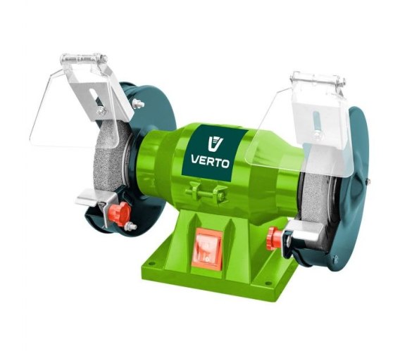 Doskonale nadaje się do ostrzenia narzędzi takich jak wiertła i dłuta, istnieje możliwość zamontowania drucianych szczotek tarczowych. Posiada solidną obudowę z osłonami przeciwodpryskowymi. Maksymalna prędkość obrotowa tarczy bez obciążenia wynosi 2950 obr./min. Szlifierka dostarczana jest w zestawie z 2 tarczami szlifierskimi A36 i A60. Zgodność z europejskimi standardami bezpieczeństwa zapewnia certyfikat CE. Marka VERTO oferuje asortyment elektronarzędzi i akcesoriów dla każdego majsterkowicza.