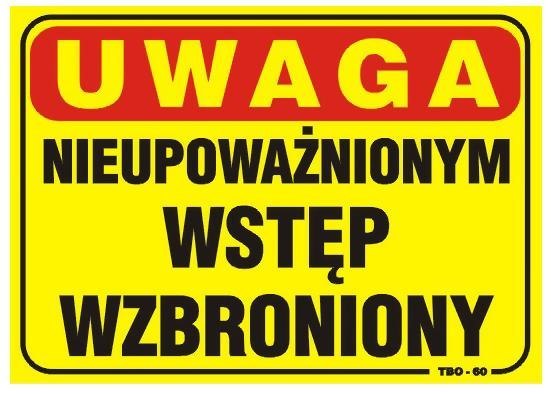 TABLICA 35*25CM UWAGA! NIEUPOWAŻNIONYM WSTĘP WZBRONIONY