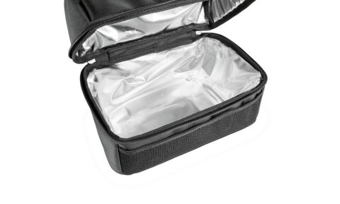 Torba na lunch jest wyściełana od wewnątrz folią izolacyjną, która jest łatwa do czyszczenia i dłużej utrzymuje ciepło lub zimno żywności.