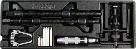W jego skład wchodzą ściągacze do sprężyn MCphersona, ściągacze do łożysk, wkrętak udarowy z końcówkami.