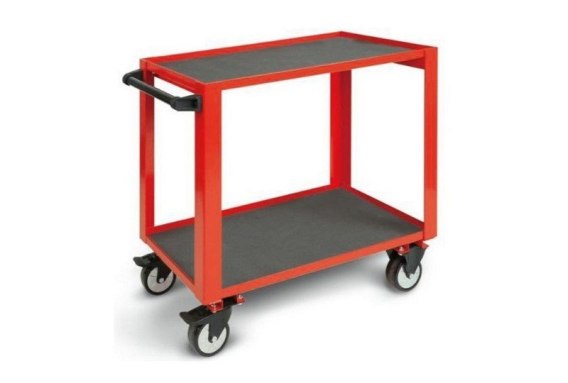 W pełni wykonany z blachy stalowej, tworzy pewną i mocną konstrukcję. Blat i półka wyłożone gumą antypoślizgową, dzięki czemu nawet podczas przemieszczania wózka narzędzia nie spadną. Maksymalne obciążenie statyczne wynosi 750 kg, rozłożone na blat i półkę. Ergonomiczny uchwyt oraz 4 koła o średnicy 125 mm, 2 stałe, 2 skrętne (jedno z hamulcem) zapewnią komfortowe przemieszczanie wózka.