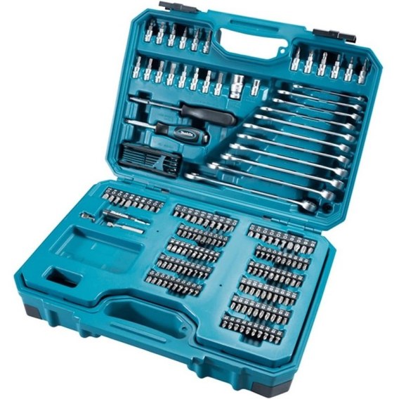 Obszerny zestaw narzędzi do warsztatu, montażu, pojazdów budowlanych i dla osób prywatnych. Zestaw przechowywany jest w walizce, która dzięki wzmocnionym narożnikom i dwóm blokadom wytrzyma nawet trudniejsze warunki. Narzędzia wykonane są z wytrzymałej stali chromowo-wanadowej.