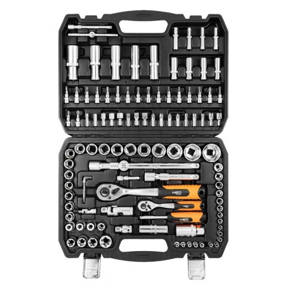 Zestaw kluczy 108 elementów 1", 1" 10-212 marki NEO to zestaw oferowany w wygodnej walizce do przechowywania oraz transportowania narzędzi. Produkt objęty jest 25-letnim okresem gwarancyjnym. To doskonała propozycja dla profesjonalistów oraz majsterkowiczów - do zastosowań przydomowych i zawodowych.