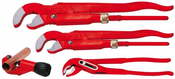 Zestaw: obcinak do rur TC 35, klucz nastawny SP 10", klucze szwedzkie 1" + 1.1/2"